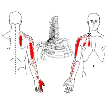 Des points trigger dans les scalènes pourront vous causer des douleurs aux épaules ainsi que des picotements et engourdissements au bras et même à la main.